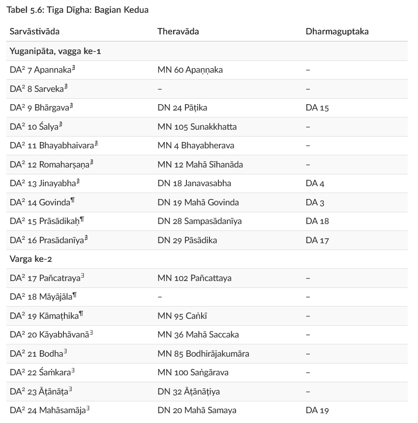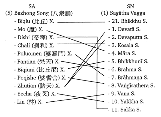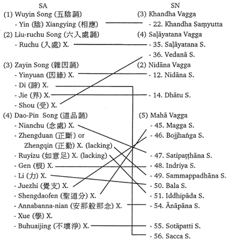 | Saṁyutta (Pali) | Saṁyukta (Mandarin) | Dua Saṁyukta “lainnya” (aliran tidak diketahui) |